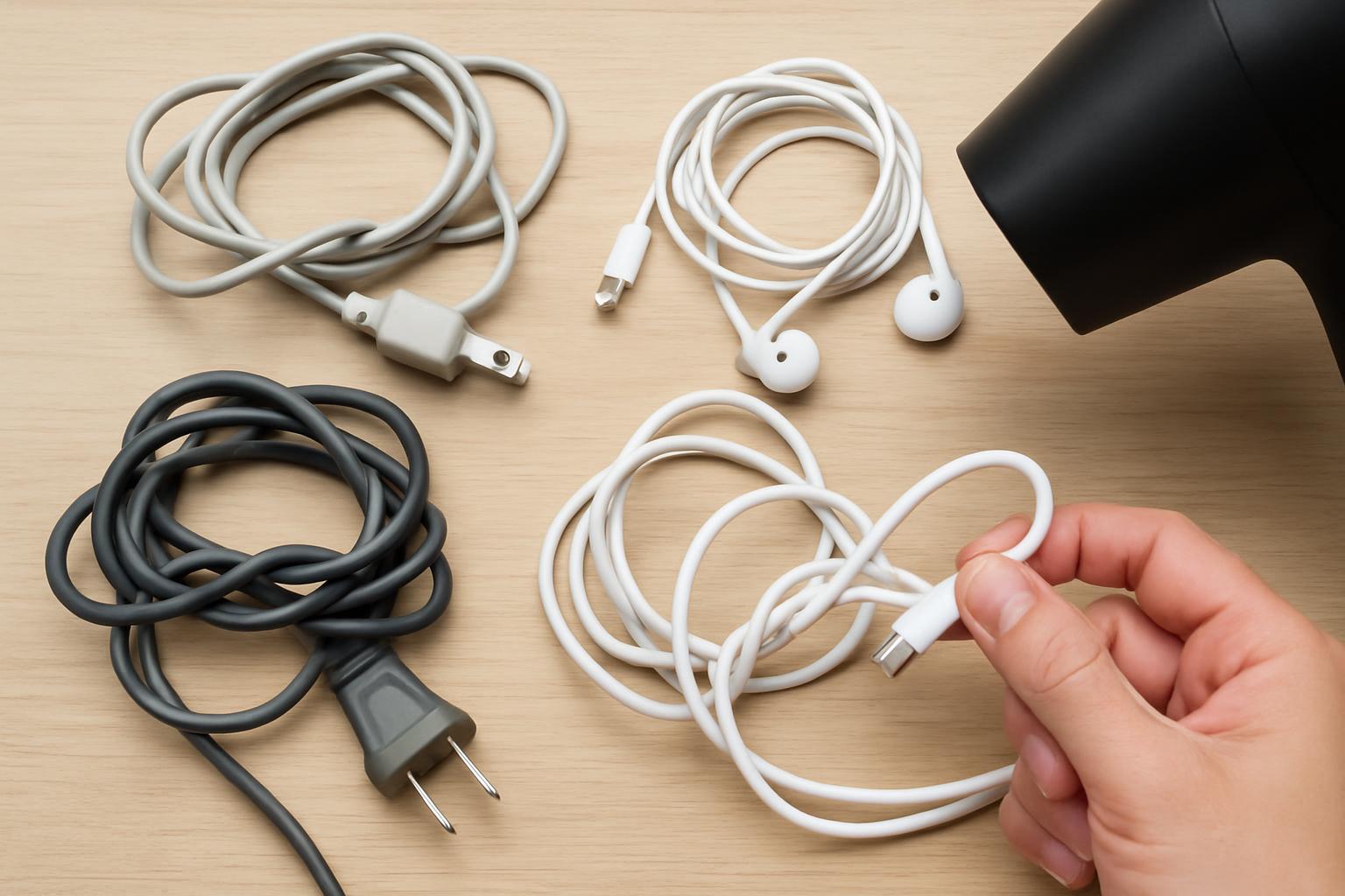 電源コードやUSB-C、Lightning、イヤホンケーブルに生じる「ねじれ」は、正しい手順なら最短30秒で安全にリセットできます。
