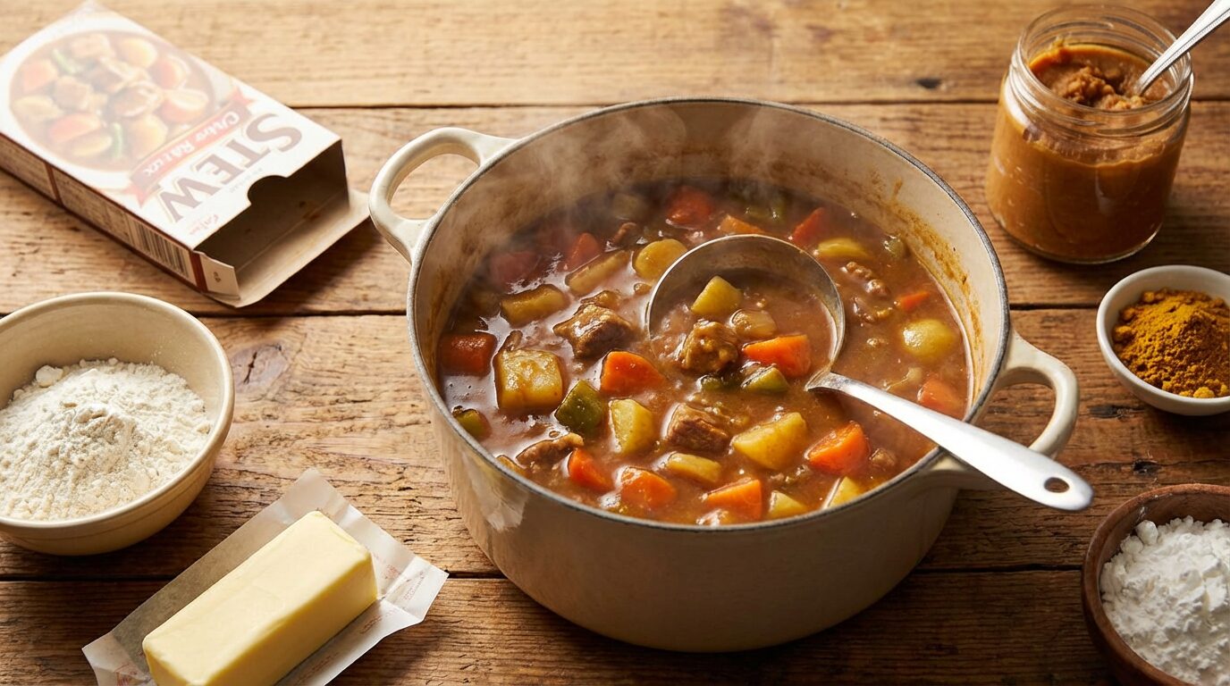 ルーが手元に一切ない場合でも、キッチンにある基本的な材料を組み合わせることで、シチューらしい味と見た目を再現することが可能です。